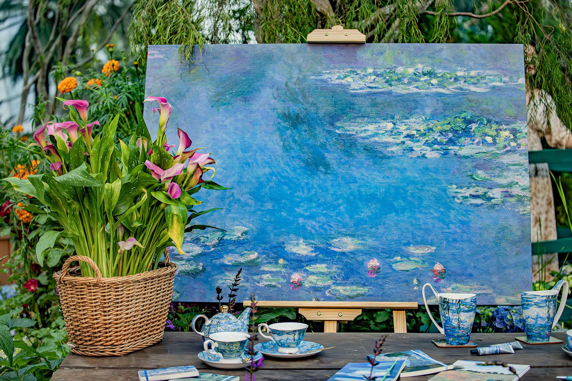 "Water Lilies" series (1899-1926). A series of paintings depicting Monet's water garden at Giverny, showcasing the artist's fascination with the interplay of light and water. Monet's later years were consumed by his exploration of the Water Lilies theme, culminating in large-scale, immersive compositions. These paintings feature a harmonious blend of colours and textures, with swirling brushstrokes creating an impression of movement and depth. -artociti