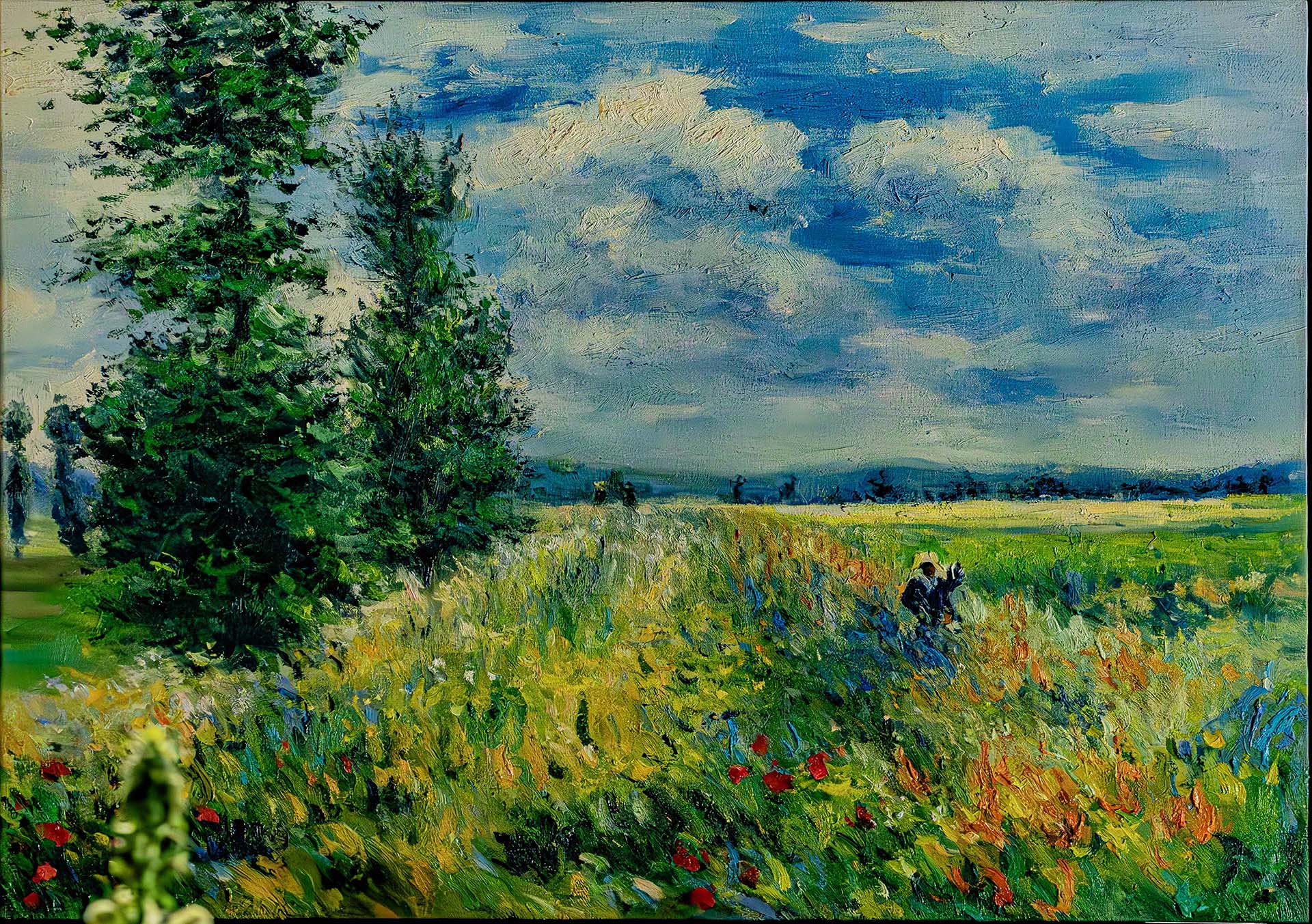Poppy Field, Argenteuil 1875. This work is one of four similar views of the plain of Gennevilliers, just southeast of Argenteuil, which Monet executed in the summer of 1875. He first painted the subject two years earlier in the celebrated Poppies near Argenteuil(Musée d'Orsay, Paris). -artsviewer